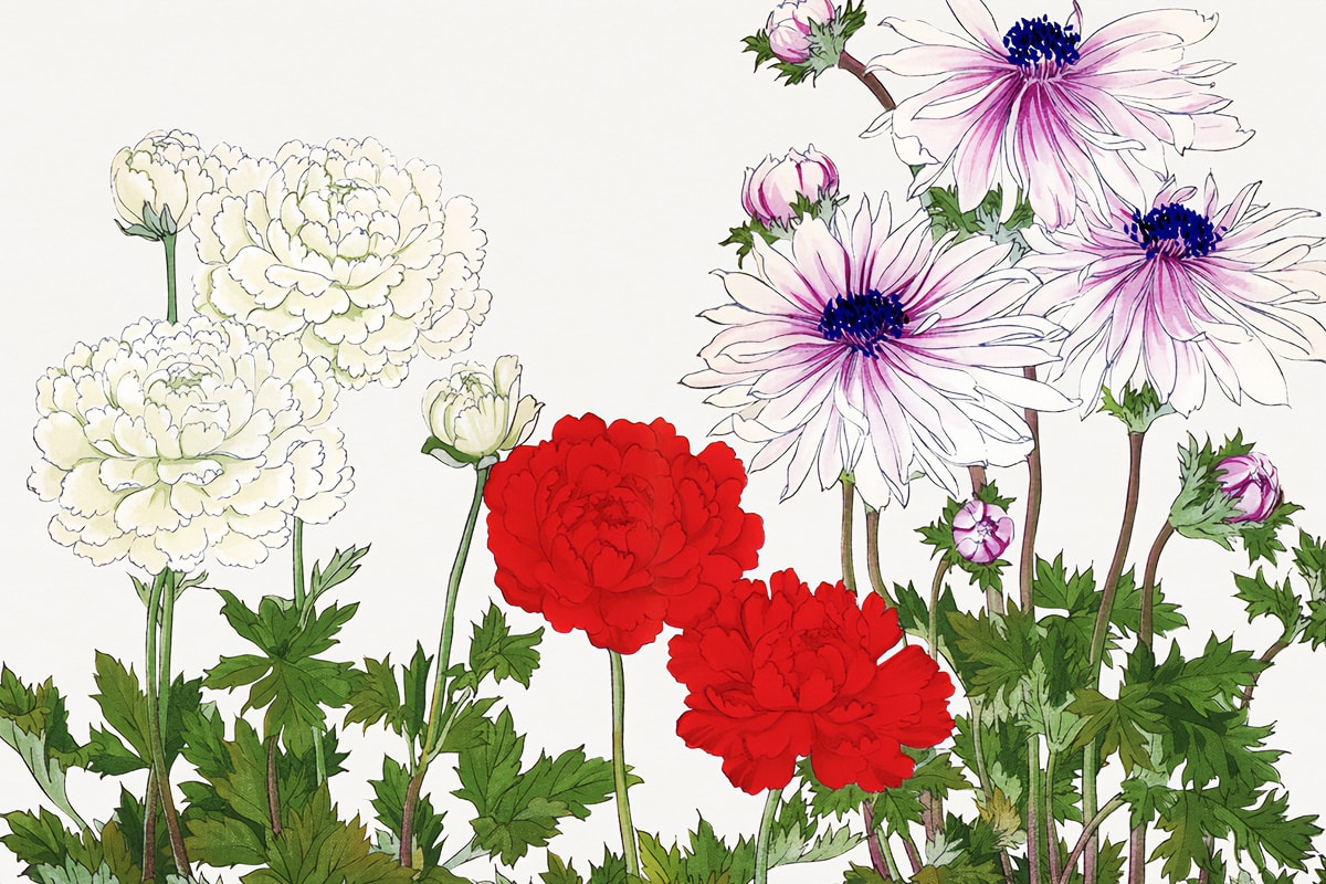 Illustration by Tanigami Kônan. Japanese Woodblock Flower Prints, 1917