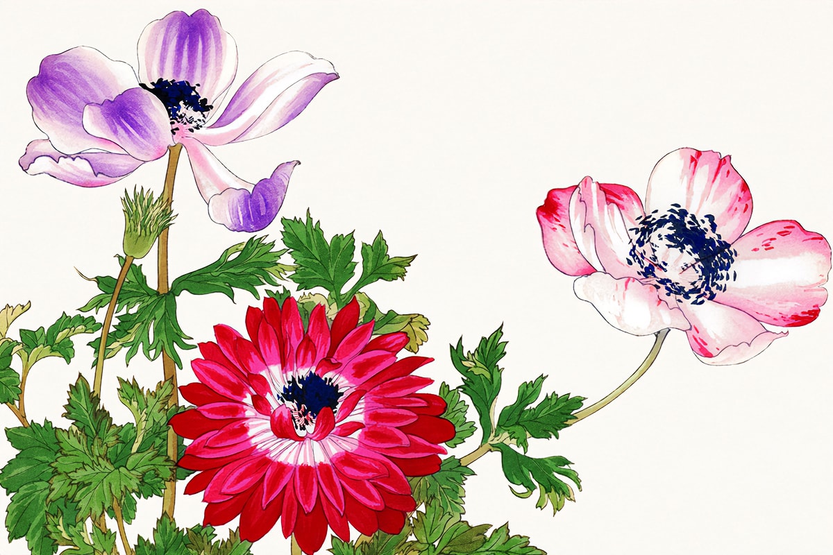 Illustration by Tanigami Kônan. Japanese Woodblock Flower Prints, 1917