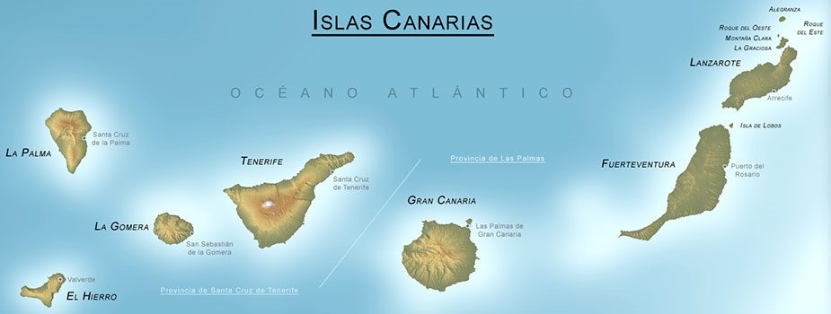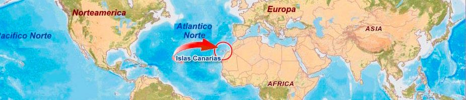 Las Islas Canarias forman un archipiélago que está situado frente a las costas del noroeste de África, cerca de los territorios del Sahara occidental y de Marruecos, entre las coordenadas de 27-29 grados de latitud norte y 13-18 grados de longitud oeste.