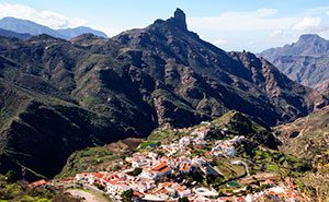 La isla de Gran Canaria tiene una forma casi circular, con un macizo montañoso en el centro, y que se encuentra casi en el centro del archipiélago canario. Tiene una superficie de 1.530 km², 256 kilómetros de costas y una altitud máxima de 1.949 m que se alcanza en el Pico de las Nieves.