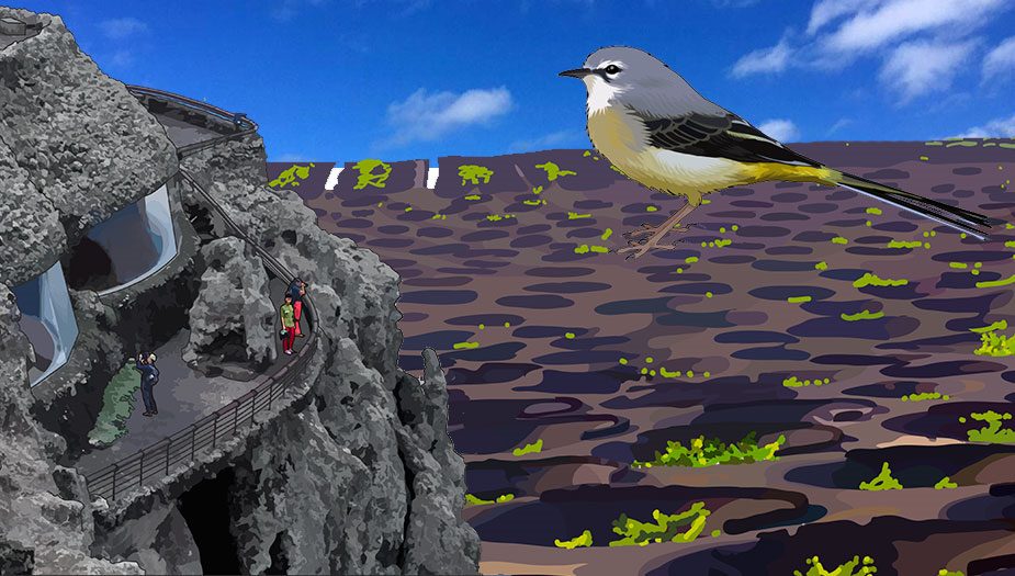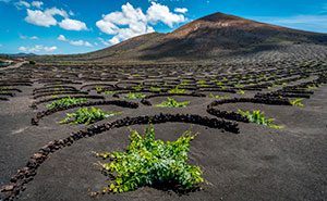 Entre Timanfaya y los Ajaches se encuentra La Geria, un área conocida por la singularidad de su paisaje volcánico, que desde siglos ha sido aprovechado por el hombre para la plantación de viñas que producen un excepcional vino. Aquí, las parras se siembran directamente en los campos de lapilli volcánico, protegidas por pequeños muros de piedra seca de forma circular que las protegen del viento.