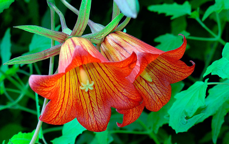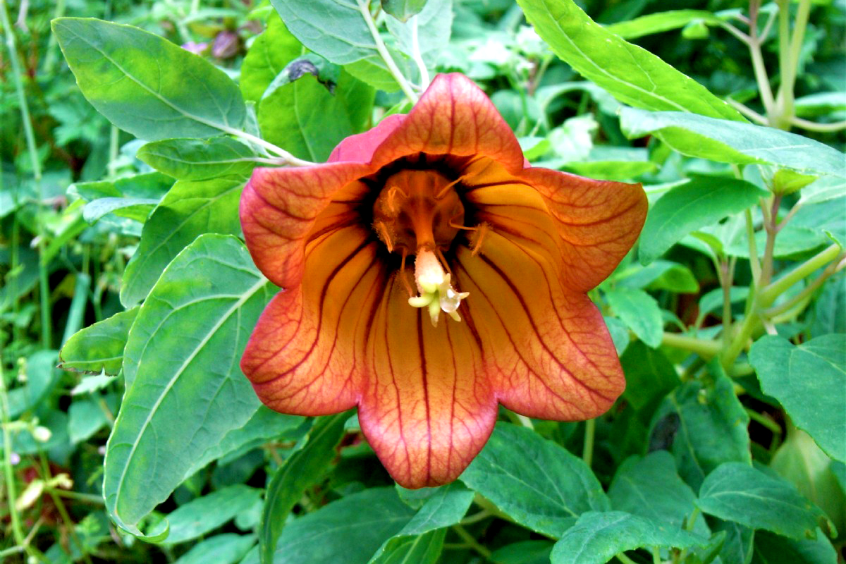 aspa invertida, y una corola campaniforme de hasta 5 cm de diámetro,