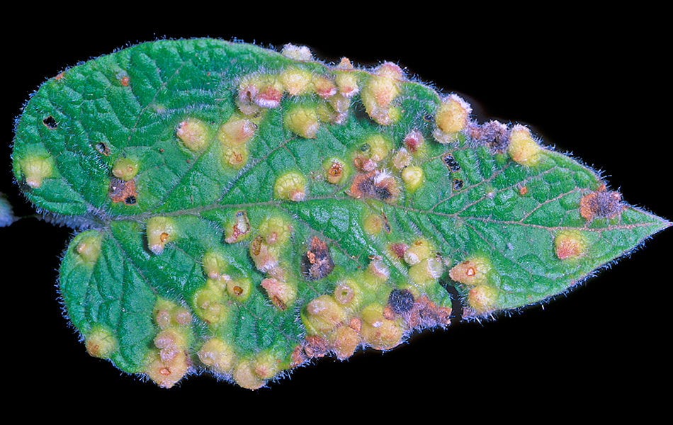 resaltada en el envés. En numerosas ocasiones son atacadas por ácaros,