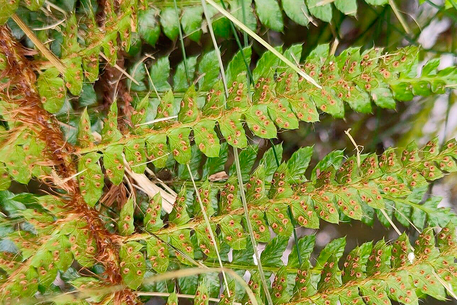 Sus diminutos soros, de color marrón oscuro, forma circular
