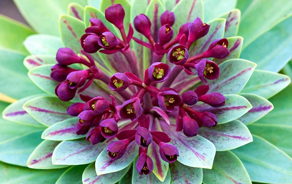 hojas más jóvenes de color verde o con rayas moradas, glándulas