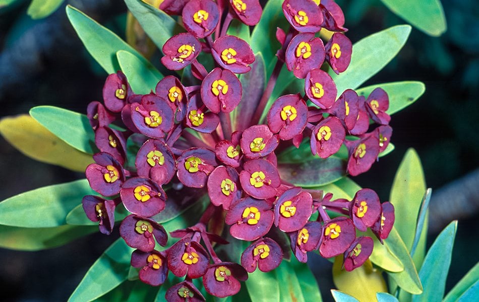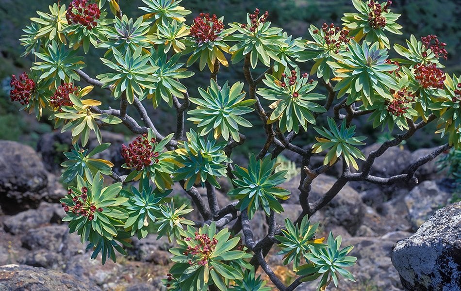 en vistosas inflorescencias umbeliformes terminales de color rojo