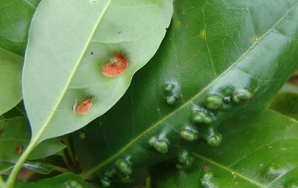 presencia de agallas, pequeños abultamientos producidos por picaduras de