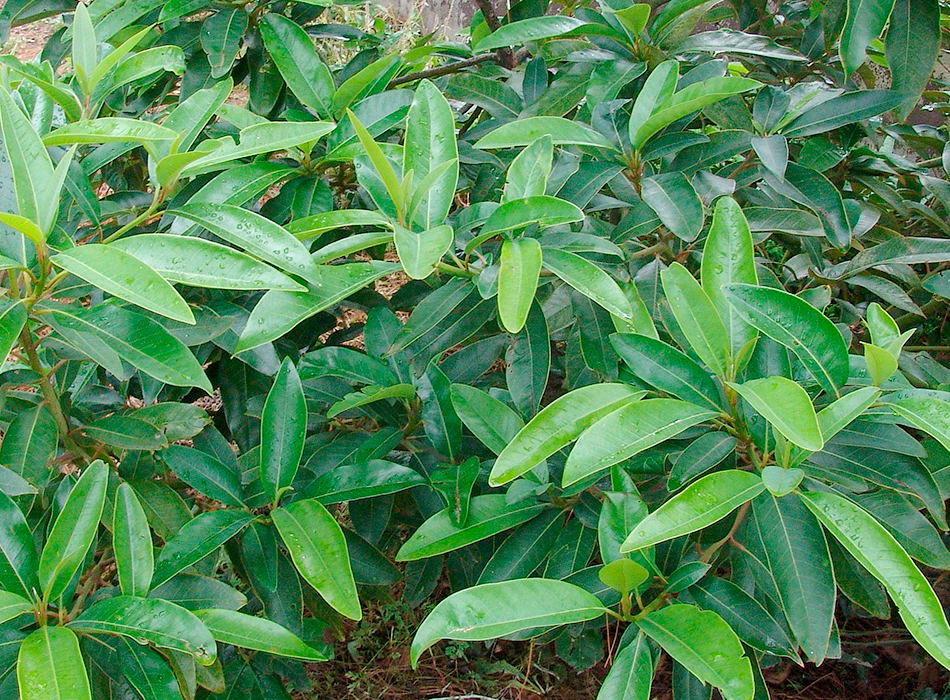 lustrosas hojas, de unos 15-18 cm de largo y 3-4 cm de ancho, son