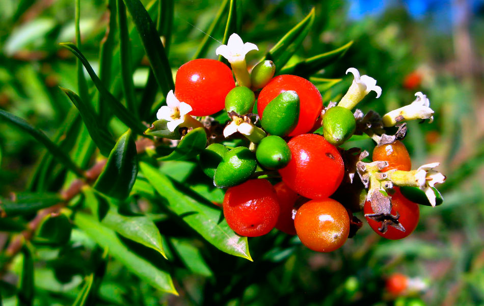 la corola. Al madurar producen gran cantidad de bayas ovaladas de color
