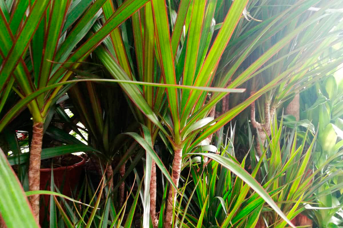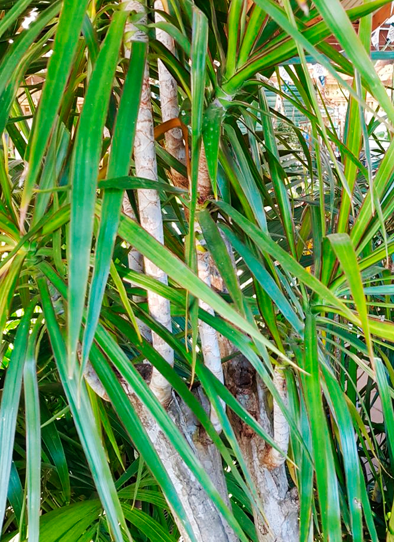 estructura de troncos despejados, coronados por llamativas rosetas de