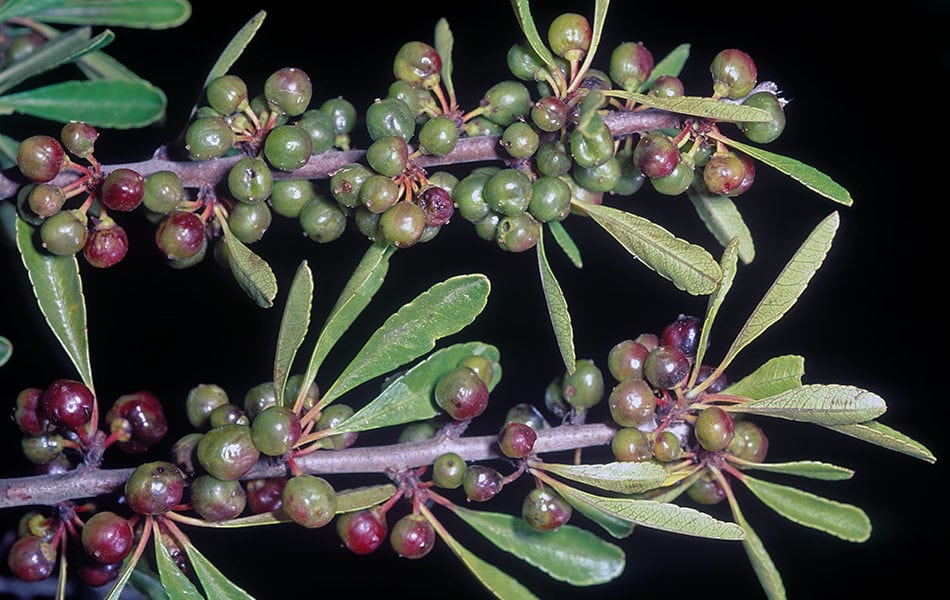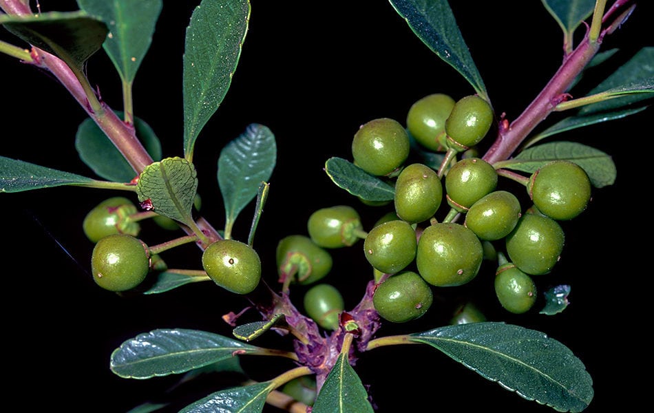Flora canaria > Rhamnus crenulata Rhamnus crenulata Espinero, Espino negro, Leña negra, Árbol negro Ficha de la especie