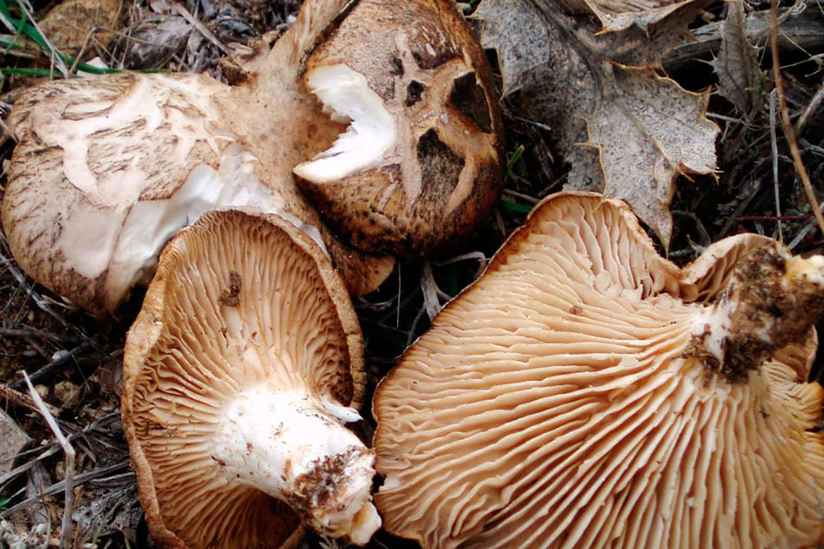 decurrentes, de color blanco, que al desecarse o con la edad pasan a