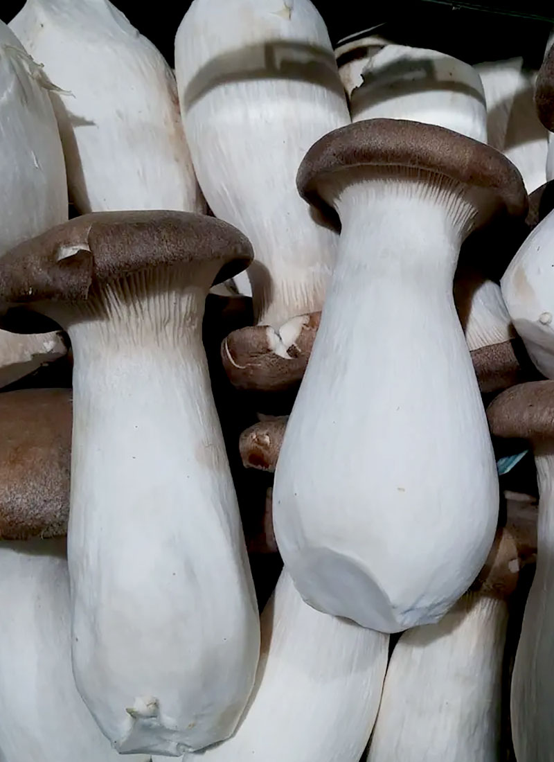 Pie muy corto, gomoso, no fibroso, un poco excéntrico en los ejemplares