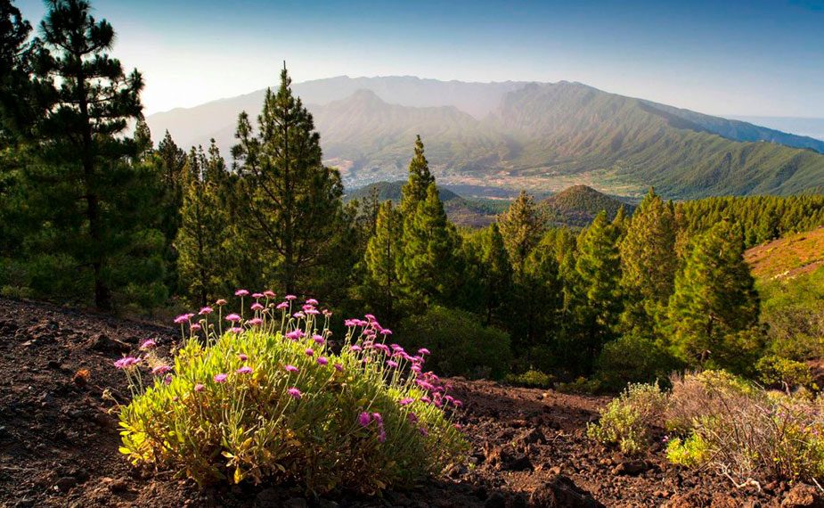 La Palma es una de las Islas Canarias con mayor superficie boscosa, tanto de pinos como de laurisilva. En cuanto a la agricultura, los cultivos principales son el plátano de Canarias y la vid.