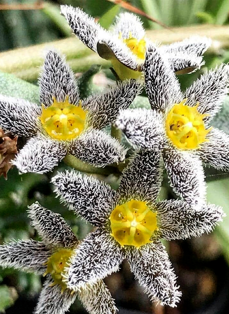 amarillento, y cubiertos en sus bordes de una vellosidad blanquecina.