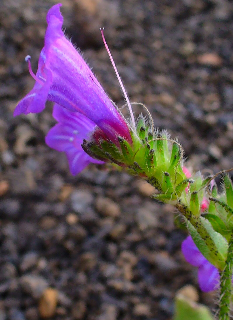 longitud. Cada flor presenta un pequeño cáliz velloso, dividido en