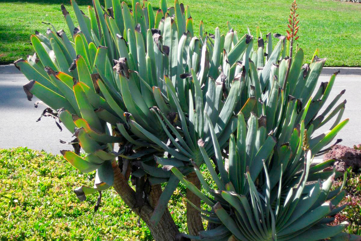 alcanzar hasta 3-5 m de altura, con un tronco leñoso revestido de una