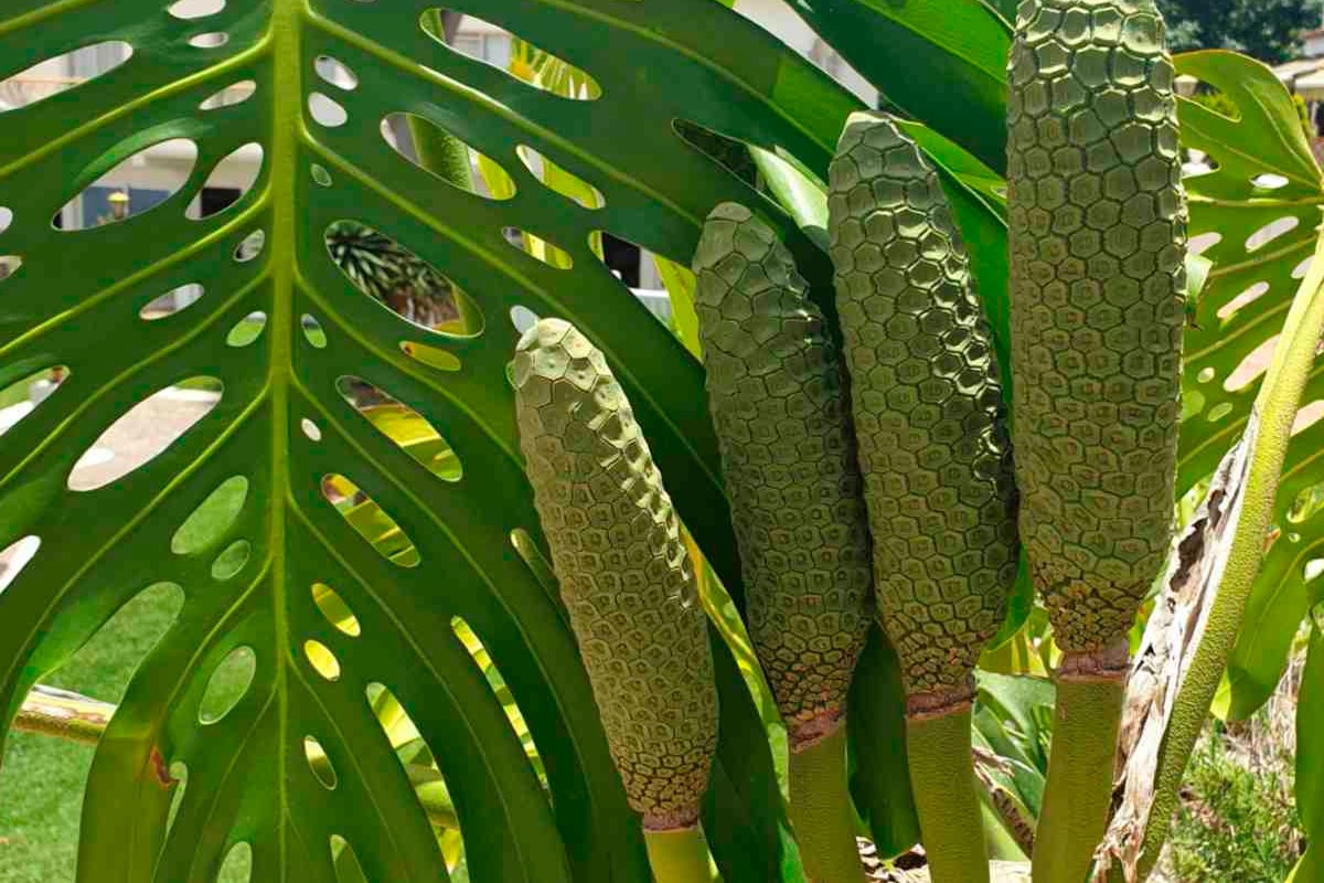 Sus flores son muy pequeñas, dispuestas sobre un espádice cilíndrico de