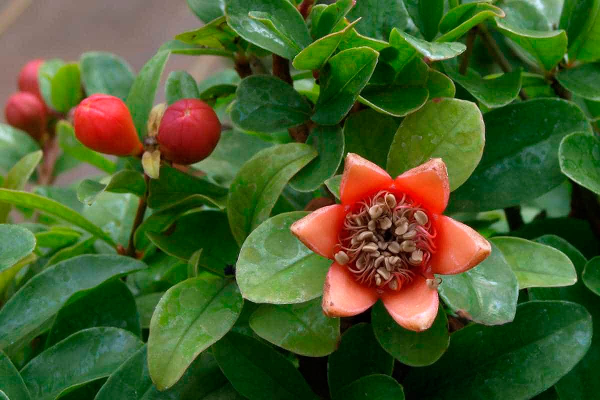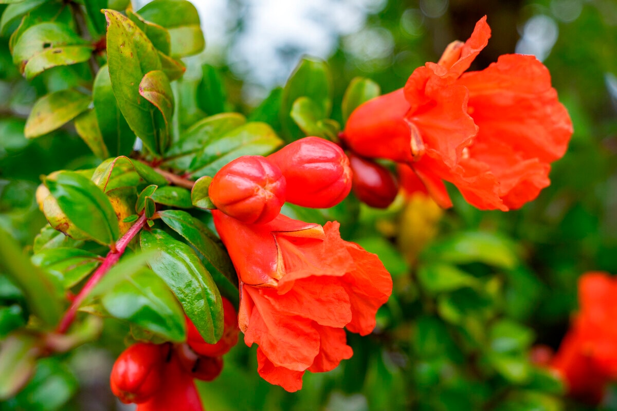 El granado es un arbolito de hoja caduca, de entre 3-5 m de altura,