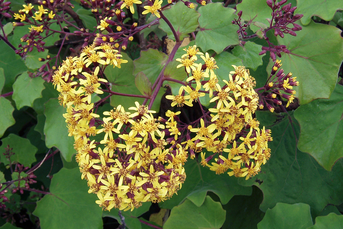 Arbusto perenne, robusto, de hasta unos 2 m de altura, con abundante y